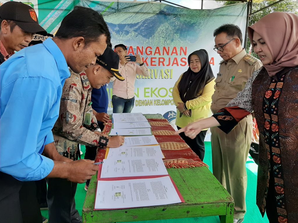 Acara dilanjutkan dengan Penandatanganan perjanjian kerjasama kemitraan ekosistem antara balai KSDA bengkulu dengan kelompok tani hutan. (Nn)