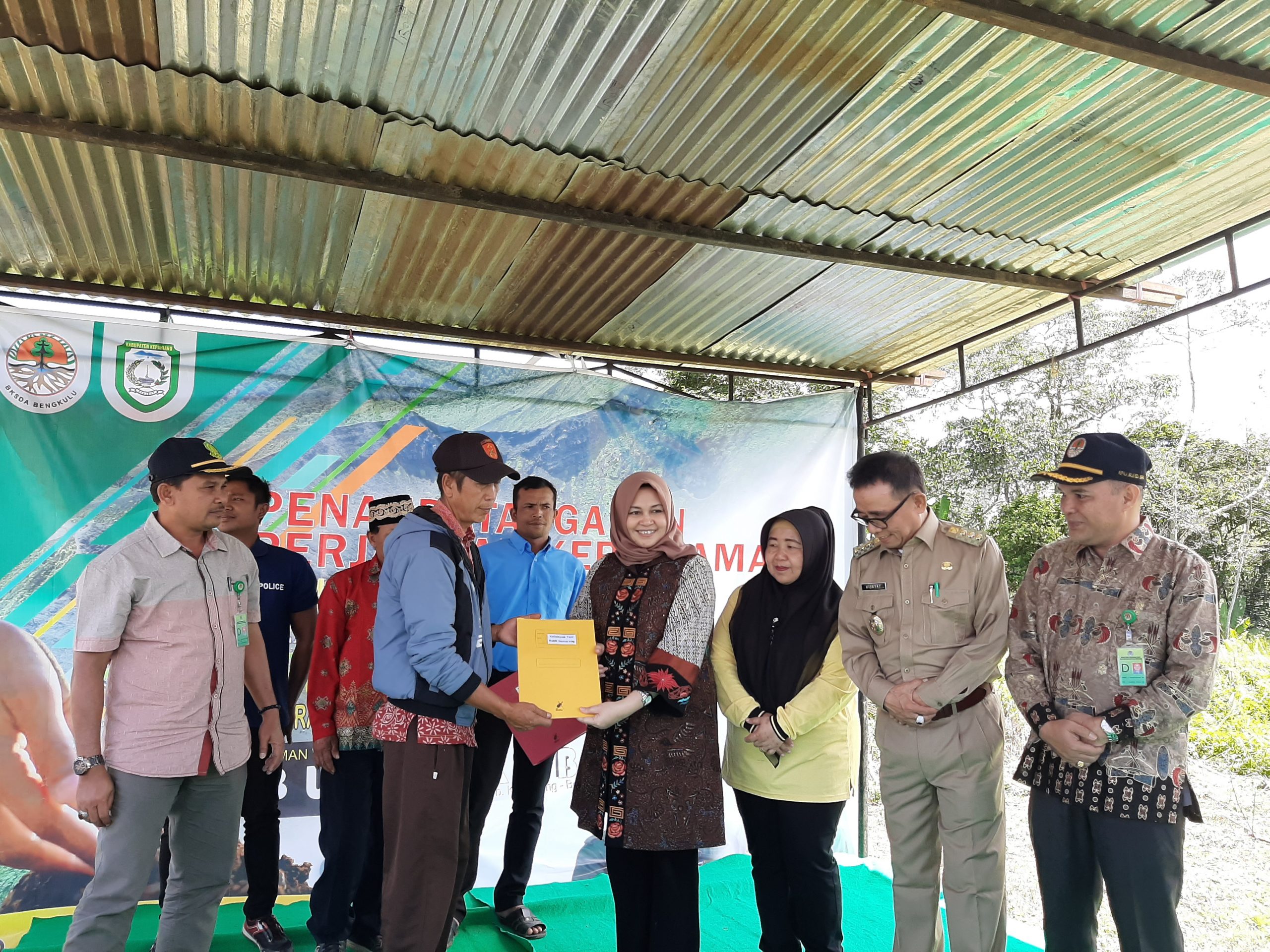 Hadir dalam pelaksanaan Perjanjian Kemitraan Konservasi dalam rangka pemulihan ekosistem adalah Bupati Kepahiang, Wakil Bupati Netti Herawati, S.Sos, Kepala OPD, Camat Kabawetan, Kapolsek Kabawetan serta Kelompok tani Hutan.