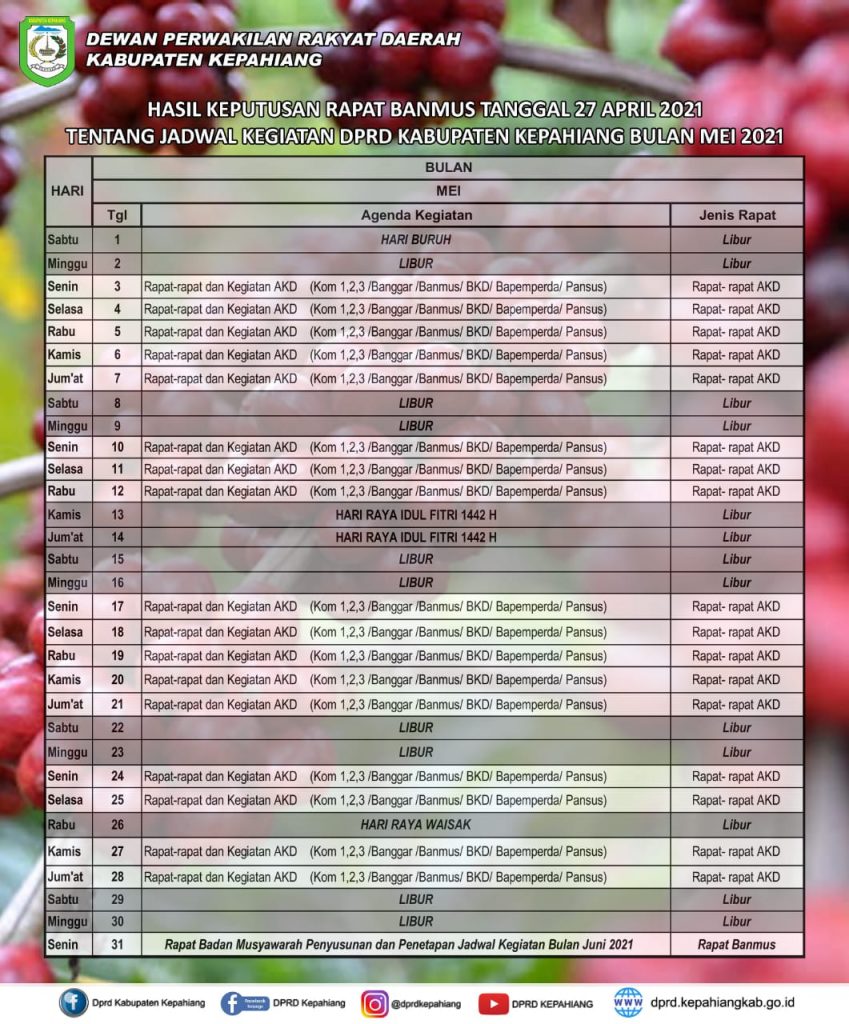 Pimpinan rapat Andrian Defandra,SE.M.Si mengatakan, dalam rapat Badan Musyawarah hari ini telah diputuskan agenda dan kegiatan DPRD untuk bulan Mei tahun 2021.