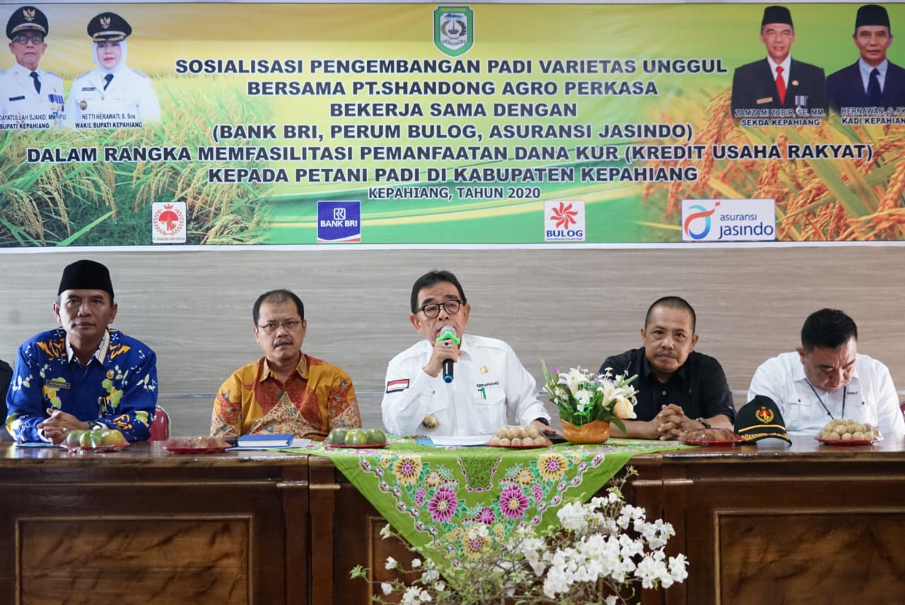 Matapublik.com, Kepahiang- Bupati Dr.Ir. Hidayattullah Sjahid,MM.IPU hadir dalam Acara Sosialisasi Pengembangan Padi Varietas Unggul Bersama PT. Shandong Agro Perkasa bekerja sama dengan Bank BRI, Perum Bulog, Asuransi Jasino di Guest House Sidorejo Kabawetan, Kamis 12/03/2020 Pukul 10.00 WIB.