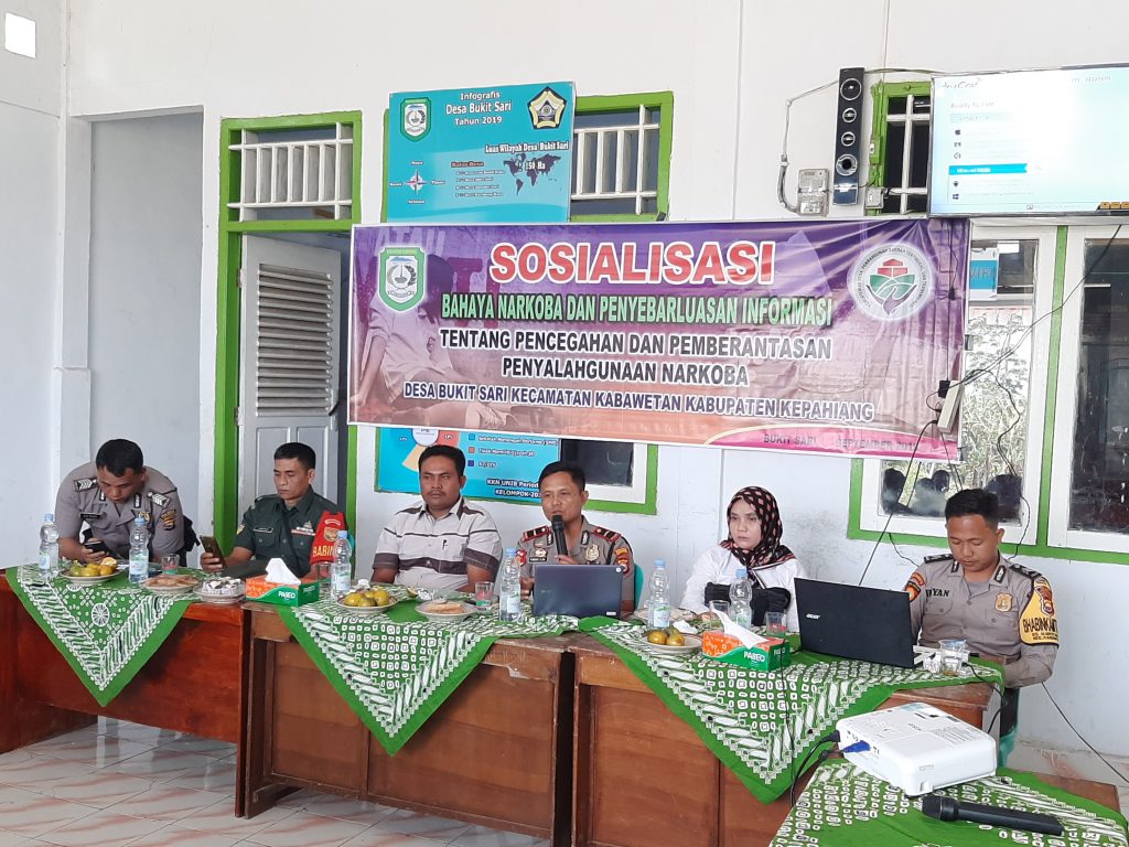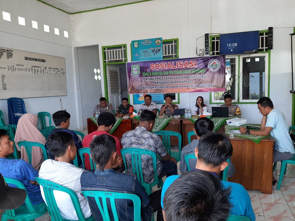 Mata publik, Kepahiang -Desa Bukit Sari Kecamatan Kabawetan, Bersama Polsek Kabawetan, Kabupaten Kepahiang Gelar Sosialisasi Bahaya Narkoba. Kegiatan sosialisasi bahaya narkoba berlangsung di balai Desa Bukit Sari Rabu (18/09/2019) yang di hadiri oleh Kapolsek Kabawetan IPDA Firman Saputra, Babinsa, Kasi PMD, Serta Lapisan Masyarakat Bukit Sari.