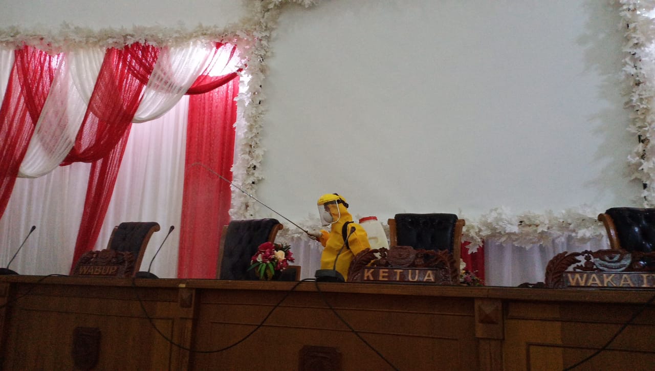 Jelang Paripurna HUT RI Ke-75, Gedung DPRD Kepahiang Disemprot Disinfektan