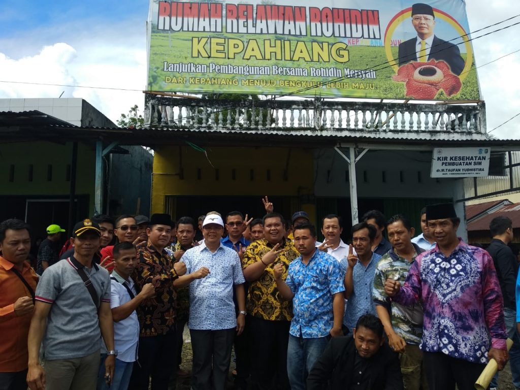 Matapublik.com, Kepahiang- Bacalon Gubernur Bengkulu Rohidin Mersyah yang juga Ketua DPD l Partai Golkar Provinsi Bengkulu mengukuhkan Tim Rumah Relawan Rohidin Kabupaten Kepahiang, yang dilaksanakan di Posko kemenangan di Desa Taba Tebelet, Kecamatan Kepahiang, selasa (28/01/2020).