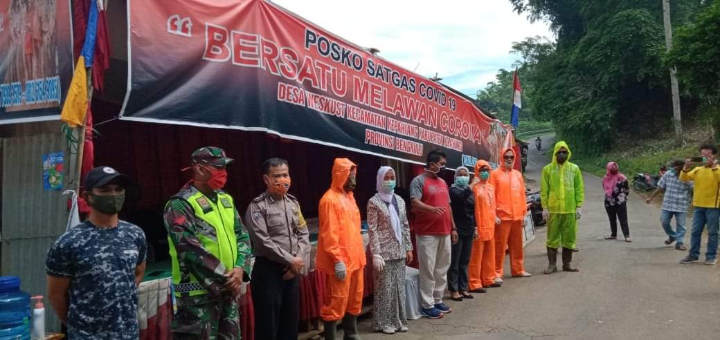 Matapublik.com, Kepahiang- Pemerintah Desa Weskust, Kecamatan Kepahiang, Kabupaten Kepahiang dirikan Posko Desa Tugas covid-19 untuk pencegahan pandemi covid-19 di jalan lintas pintu masuk Desa weskust.