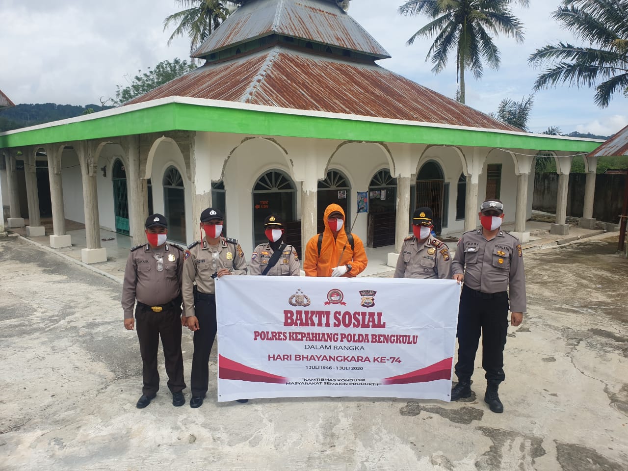 Matapublik.com, Kepahiang- Dalam rangka memperingati Hari Bhayangkara ke-74 Polres Kepahiang Polda Bengkulu laksanakan kegiatan bakti sosial penyemprotan disinfektan, senin 22/06 Pukul 09.00 WIB.