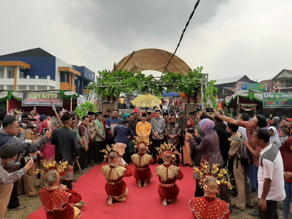 Gubernur Bengkulu yang diwakili staf Ahli Bidang Ekonomi Soemarno, bersama rombongan di sambut langsung oleh Bupati Kepahiang dengan sambutan adat kepahiang.