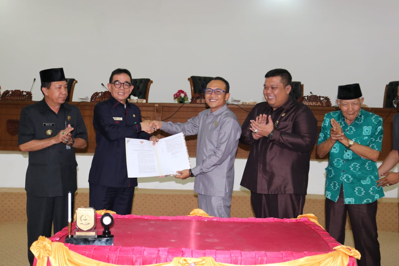 Disampaikan Andrian bahwa berdasarkan pendapat Fraksi-Fraksi DPRD maka Pimpinan DPRD memutuskan dalam Surat Keputusan DPRD yang berita acara nya juga ditanda tangani Bupati Kepahiang menyetujui Empat (4) Raperda dan menolak satu (1) Raperda.