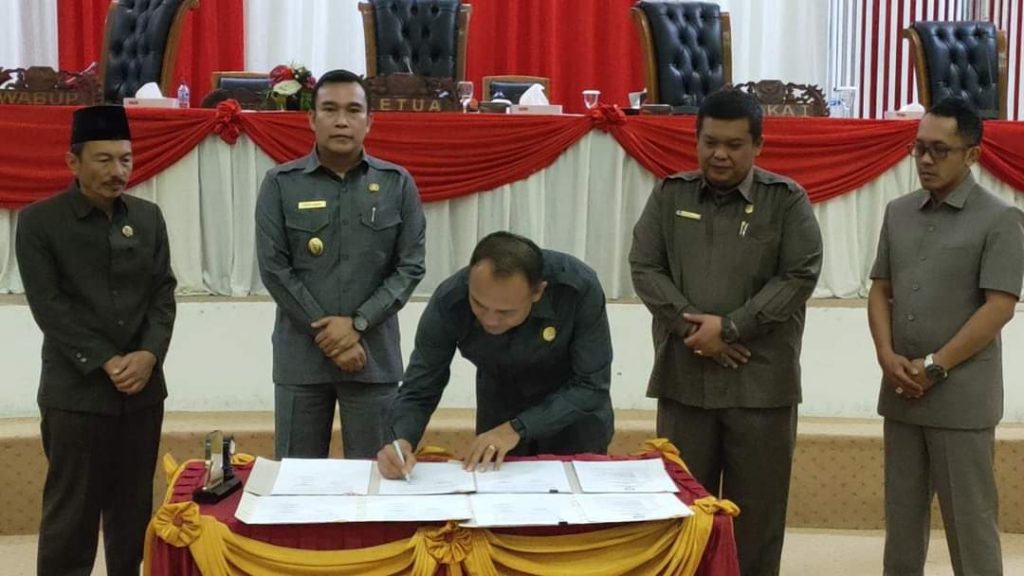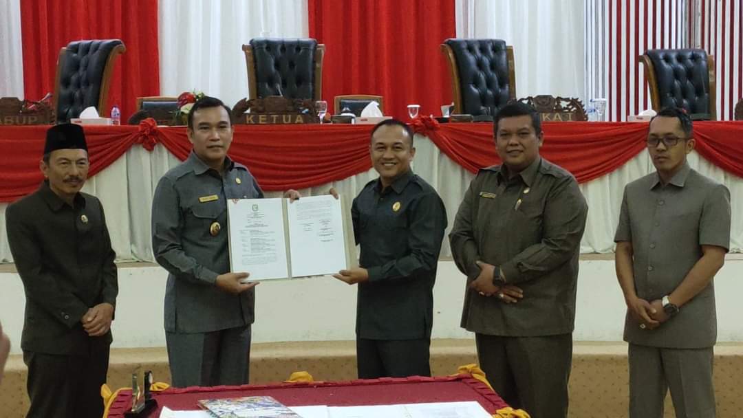 Kepahiang, Matapublik.com – Wakil Bupati Kepahiang H. Zurdinata S,IP dan Pimpinan Dewan Perwakilan Rakyat Daerah (DPRD) menandatangani Nota Kesepakatan Perubahan Kebijakan Umum Anggaran/Prioritas Plafon Anggaran Sementara (KUA/PPAS) Anggaran Pendapatan dan Belanja Daerah (APBD) Kabupaten Kepahiang Tahun Anggaran 2022 dalam Rapat Paripurna yang digelar di Ruang Sidang Utama Kantor DPRD Kabupaten Kepahiang pada Jum’at 12/08/2022.