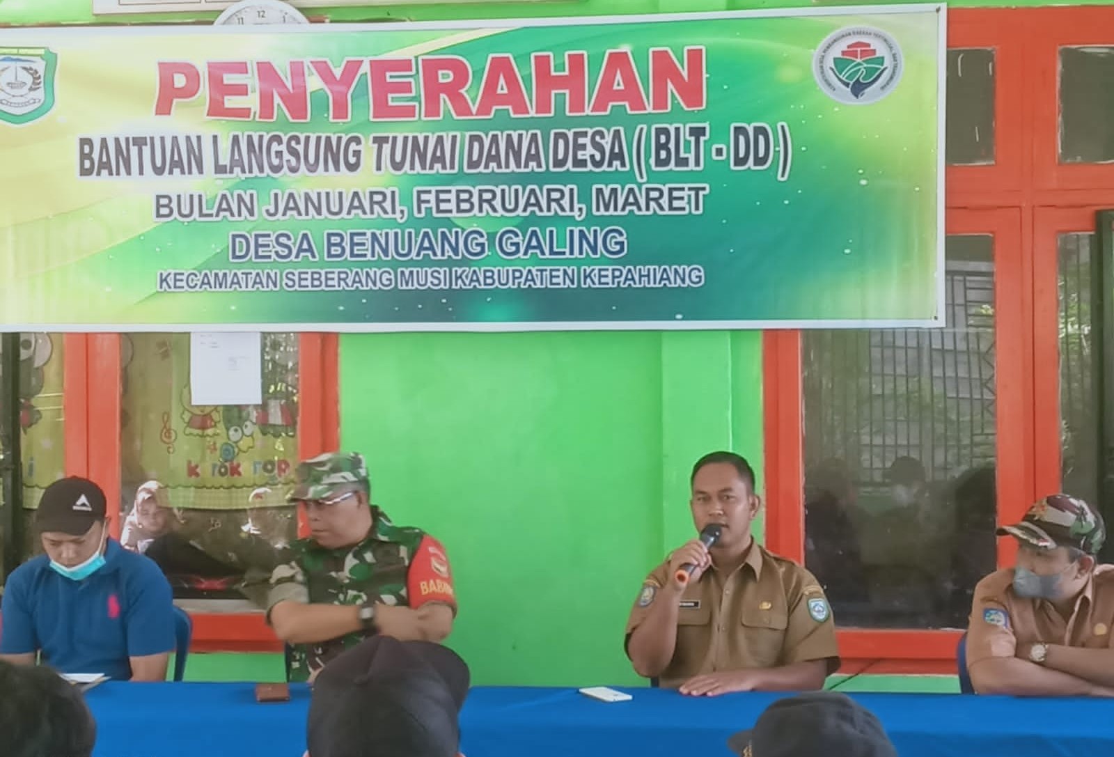 Kepahiang, Matapublik.com – Pemerintah Desa Benuang Galing, Kecamatan Seberang Musi, Kabupaten Kepahiang, menggelar penyaluran Bantuan Langsung Tunai Dana Desa (BLT-DD) Tahap 1 di Balai Desa setempat pada, Selasa, (19/04/2022).