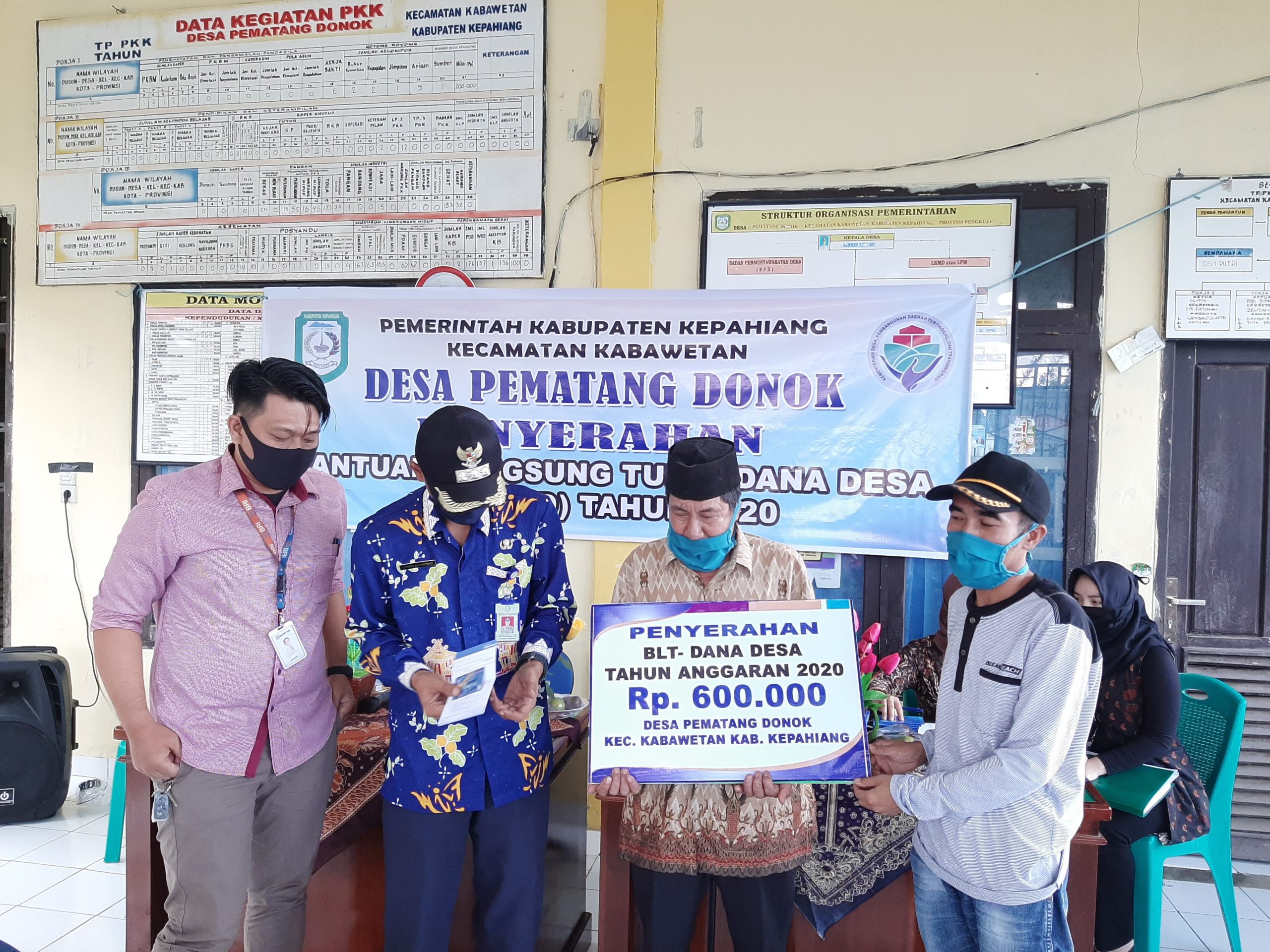 “Terdapat 67 KK penerima BLT untuk Desa Pematang Donok, gunakanlah bantuan tersebut untuk keperluan sehari-hari karena dampak pandemi covid-19, bukan untuk keperluan yang lain seperti beli mas atau Hp,” Sampai Kades.