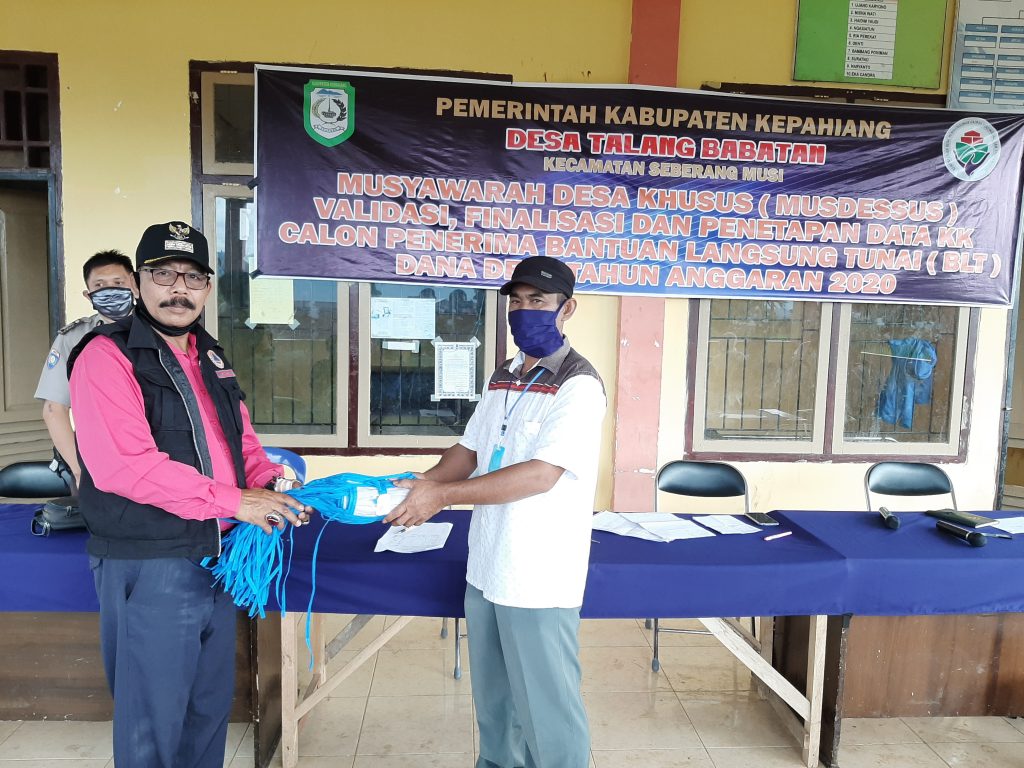 Matapublik.com, Kepahiang- Pemerintah Desa Talang Babatan Kecamatan Seberang Musi, Kabupaten Kepahiang laksanakan musyawarah Desa Khusus (MUSDESSUS) Validasi, Finalisasi dan penetapan data KK calon penerima Bantuan Langsung Tunai (BLT) Dana Desa Tahun Anggaran 2020, Sabtu 9 Mei 2020.