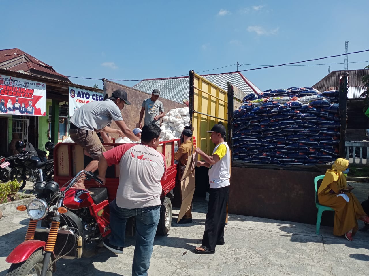 Dijelaskan Sopian, paket sembako yang dibagikan tersebut berupa beras minyak dan gula, pembagian sembako dibagikan oleh perangkat desa masing-masing.