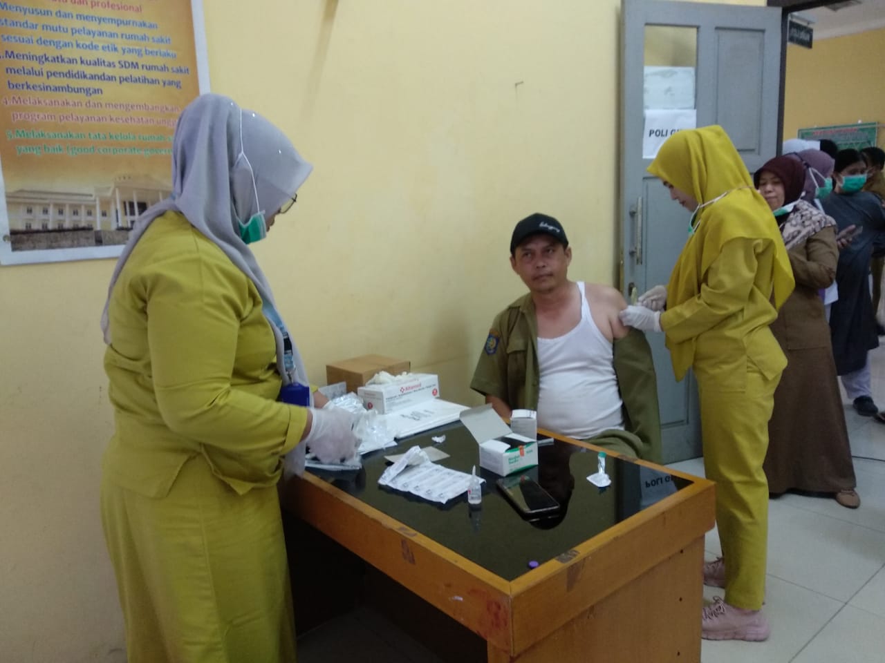 “Sebagai pelayanan masyarakat terutama tenaga kesehatan wajib di vaksin mulai vaksin 1,2,3 dan dilanjutkan vaksin Boster 1 serta ke- 2 maka hari ini hingga hari Kamis seluruh nakes yang berjumlah 400 orang di vaksin boster ke-2, ” ujar Direktur.