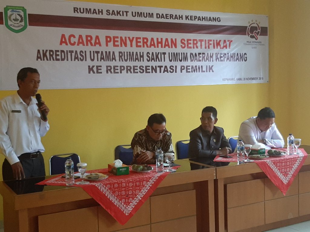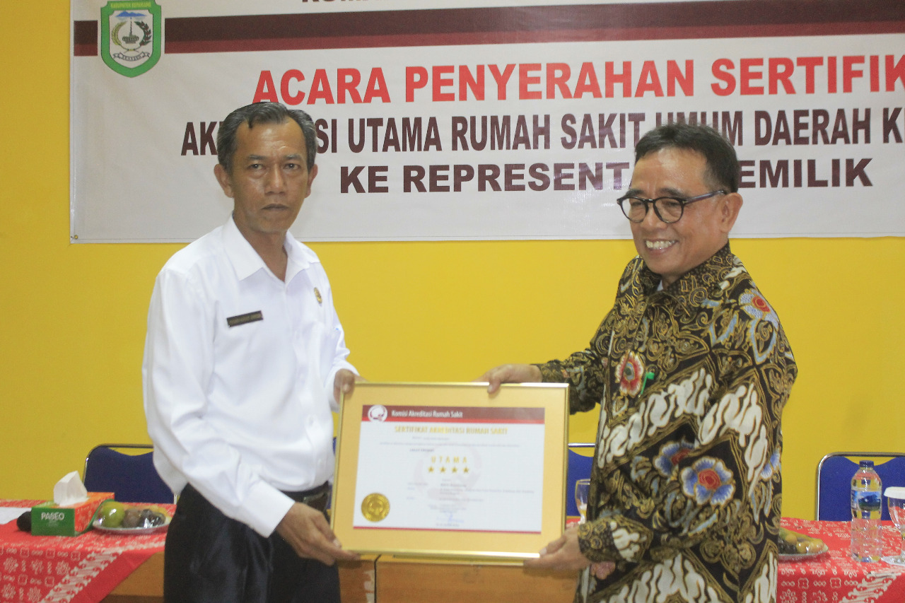 Matapublik.com, Kepahiang- Komite Akreditasi Rumah Sakit (KARS) Kementerian Kesehatan RI memberikan Akreditasi Utama bagi Rumah Sakit Umum Daerah (RSUD) Kepahiang. Penyerahan sertifikat Akreditasi Utama diberikan langsung pada Bupati Kepahiang Dr Ir Hidayattulah Sjahid, MM IPU Rabu (20/11).