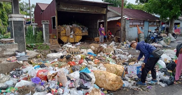 Dua unit kontrainer yang disiapkan di dalam rumah sampah terlihat sudah penuh, sehingga hal itulah yang mengakibatkan sampah berserakan sampai ke badan jalan.