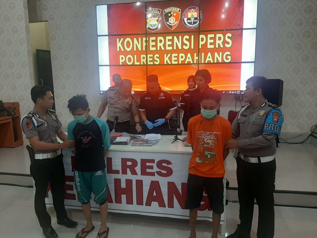 Kapolres Kepahiang AKBP Suparman, SIK, MAP didampingi Kasat Reskrim AKP, Yusiady, SIK dan Kanit PPA sat reskrim Polres kepahiang IPDA REKA GEOFANNI ,S.Tr.K pada keterangan Pers Mengatakan IS Dan RF ditangkap berdasar laporan Tindak Pidana Pencabulan Anak dibawah umur.