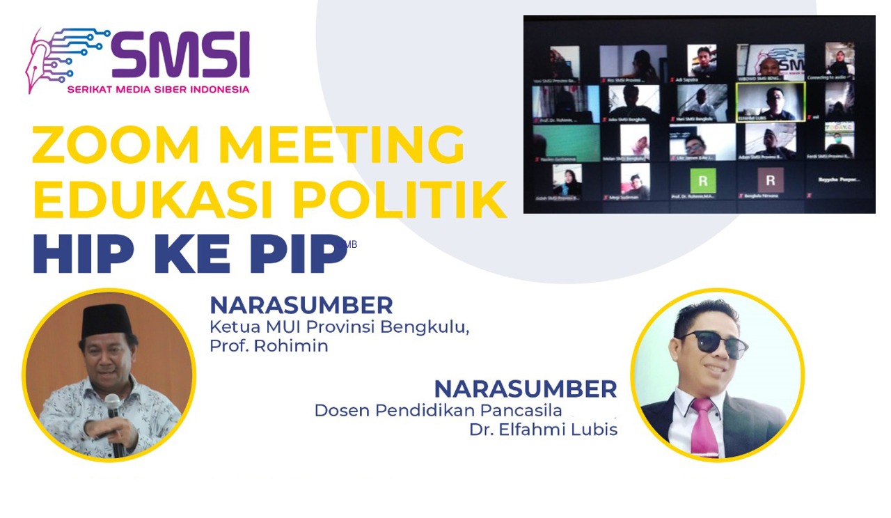 Matapublik.com, Bengkulu – Dalam rangka memberikan edukasi Politik RUU HIP ke RUU PIP, Serikat Media Siber Indonesia (SMSI) Provinsi Bengkulu menggelar Webinar yang diikuti oleh 33 peserta yang terdiri dari OKP, OKM, Media Online dan LSM di Kota Bengkulu.